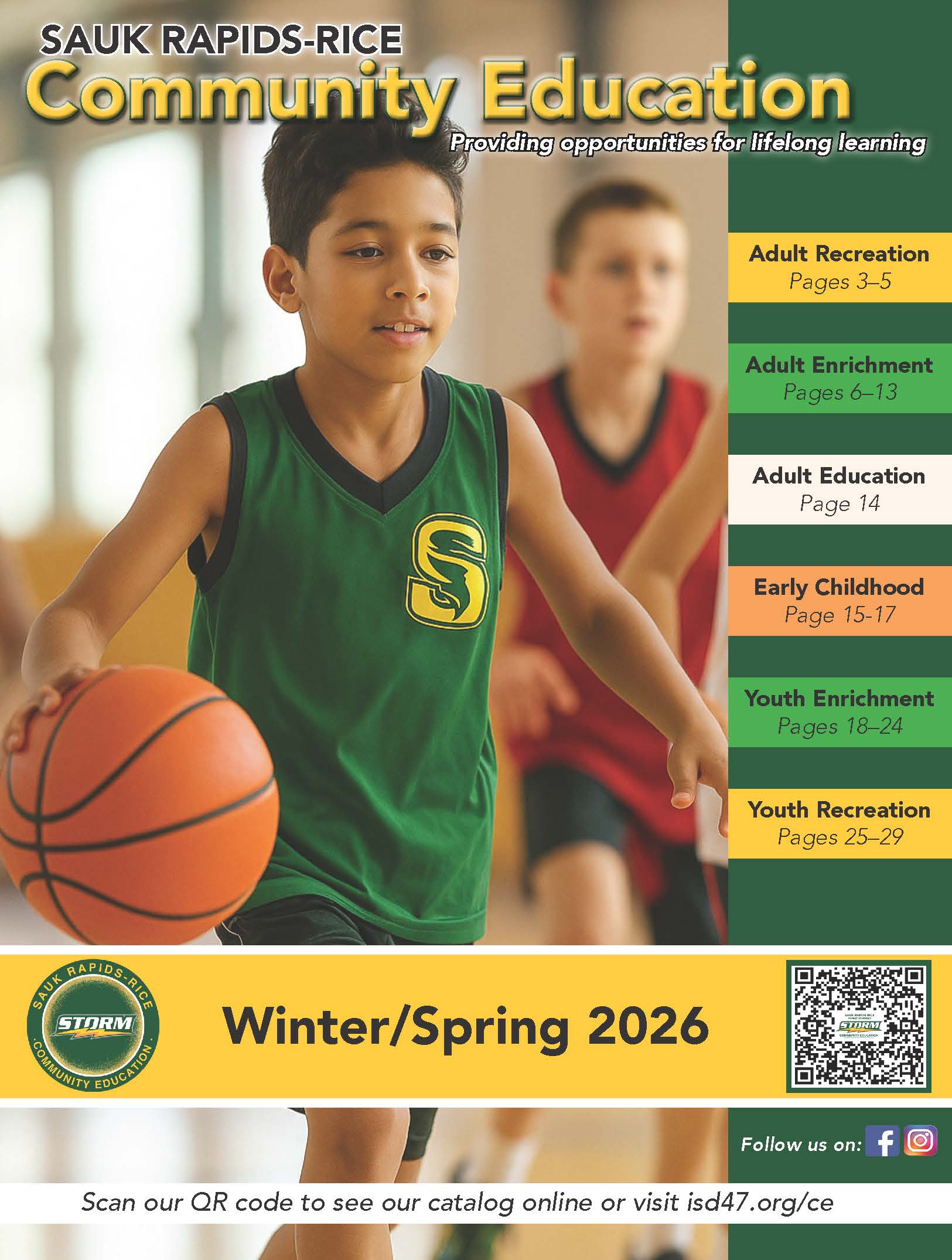 A wide variety of programs for adults, although most courses are suitable for those ages 16 and up. You will find adult fitness and recreation under Sauk Rapids Recreation.